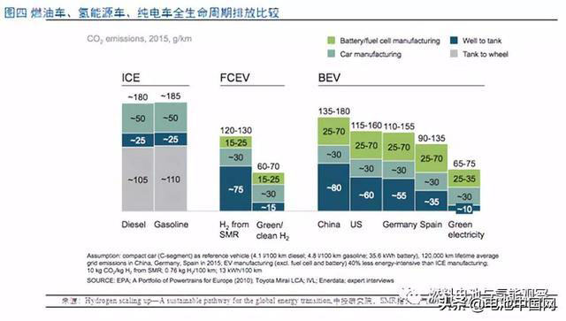 減排:氫燃料電池的反應方程式非常簡單:氫氣+氧氣→水。不僅沒有氮氧化物這種有毒氣體,連二氧化碳都沒有。當然,與電動車碳排放的爭議相似,從全生命周期的角度來看,發(fā)電或制氫是免不了有碳排放的。目前的主流觀點是:即便是考慮70%的火電,純電動車的碳排放還是優(yōu)于燃油車,氫燃料電池車則與純電動相當或更好。