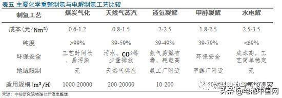 其中氯堿副產(chǎn)品制氫,由于是在現(xiàn)有氯堿工業(yè)體系中,收集原先直接排掉的副產(chǎn)品氫氣,對資源、環(huán)境不增加任何新的負擔,且成本適中(1.3-1.5元/m3),所制取的氫氣純度高達99.99%,是目前較為適宜的制氫方式。但此種制氫方式受規(guī)模所限,無法滿足遠期氫能源車放量后的需求。長期來看,綜合考慮環(huán)保、成本等因素,除氯堿、電解制氫外的氫產(chǎn)能應由化學重整制氫工藝滿足。