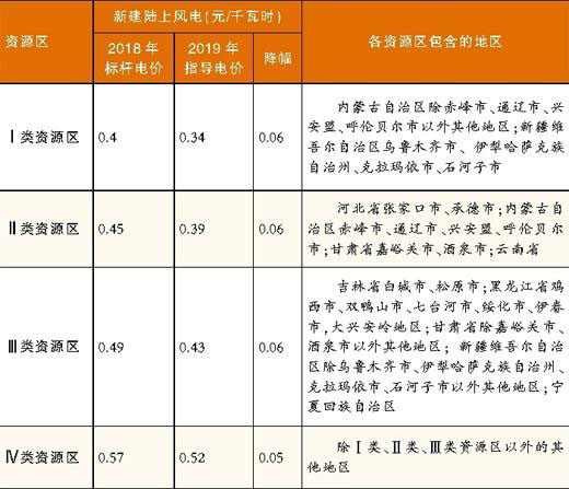 據(jù)會議透露的消息,本次討論結(jié)果為:2019年即將出臺的I、II、III、IV類陸上風(fēng)資源區(qū)指導(dǎo)性電價分別為0.34元/千瓦時、0.39元/千瓦時、0.43元/千瓦時、0.52元/千瓦時,相比2018年分別下降0.06元、0.06元、0.06元、0.05元。預(yù)計在2020年初,仍然將對I、II、III、IV類陸上風(fēng)資源區(qū)出臺指導(dǎo)性電價,分別下調(diào)0.05元/千瓦時。