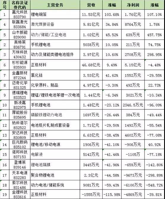 據(jù)高工鋰電統(tǒng)計(jì)了目前發(fā)布2018年業(yè)績(jī)報(bào)告的19家新三板企業(yè)發(fā)現(xiàn),營(yíng)收凈利雙豐收的企業(yè)只有嘉元科技、聯(lián)贏激光、英特萊和方林科技等5家,德瑞鋰電、新凌嘉、厚能股份等11家企業(yè)營(yíng)收凈利雙雙下滑,金鋰科技、天豐電源、盈博萊6家企業(yè)甚至凈利虧損,12家企業(yè)營(yíng)收過(guò)億。