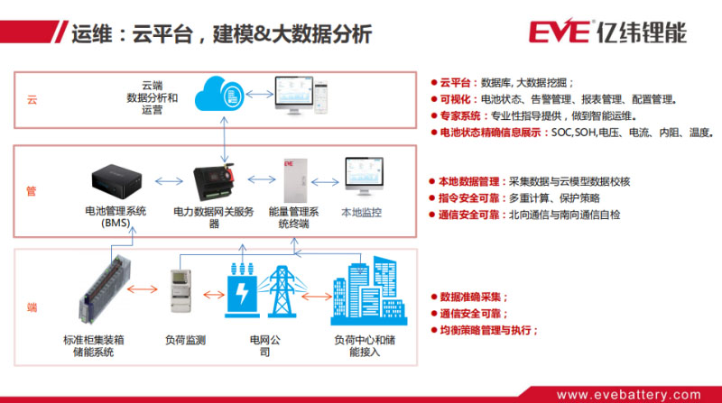 4、針對運維,除了產(chǎn)品的易維護(hù)設(shè)計,高效 智能運維是儲能電站的發(fā)展趨勢,比如一個電池箱上的BMS從控故障了,系統(tǒng)的云平臺可以通過上報過來的模塊長期運行數(shù)據(jù)分析,結(jié)合系統(tǒng)內(nèi)建立的各類故障模型數(shù)據(jù)庫,能夠準(zhǔn)確對故障進(jìn)行預(yù)警或判斷,并提供維護(hù)建議或及時的動作,甚至以后電站的模塊更換可以將新的模塊發(fā)給快遞小哥,通過遠(yuǎn)程簡單指導(dǎo)進(jìn)行更換就可以了。