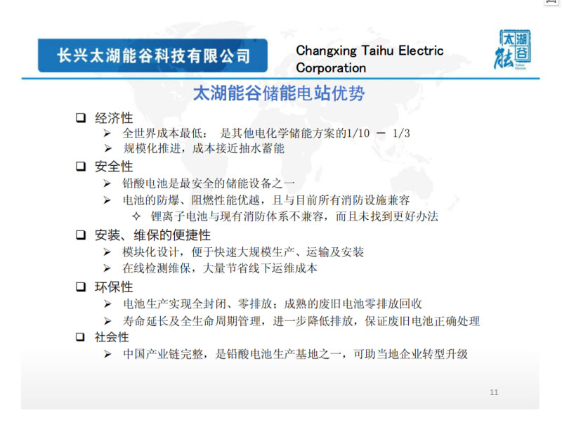 最好的是水庫儲能,但不是到處可用,電化學(xué)儲能有它的優(yōu)勢?,F(xiàn)在大家走的比較快,鉛酸和鋰電池繼續(xù)在做。比較了鉛酸電池和鋰電池的特點以后,覺得目前選鉛酸電池是一個很好的技術(shù)路徑。主要是兩個部分,一個部分在它的安全性,鉛酸電池安全消防是比較好的,還有可回收性,現(xiàn)在鉛酸電池已經(jīng)做到了99.8%,鋰電池還需繼續(xù)努力。鉛酸電池固然有一個缺點,就是壽命短些,鉛酸電池的壽命短也不完全是電池的緣故,跟我們的使用環(huán)節(jié)非常有關(guān)系,所以我們作為第一個應(yīng)用,太湖能谷集中精力攻中國的AGM鉛酸電池,即電動自行車上用的電池,延長這種電池壽命以后發(fā)現(xiàn)儲能性價比得到了很大的改善。