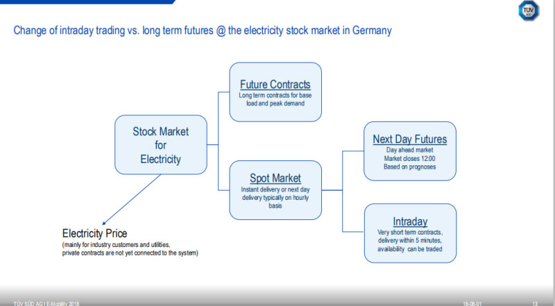 這是一個(gè)日間平均價(jià)格走勢(shì)圖,從2015年-2018年找不到這個(gè)圖了,但是基本上就是每兆瓦時(shí)24-26歐元,還是比較低的,而且德國(guó)它已經(jīng)不是一個(gè)陽光很充足的國(guó)家了。其實(shí)發(fā)生巨大的變化的地方就是能源市場(chǎng)的行為,我們對(duì)于電,有一個(gè)相當(dāng)于這個(gè)股市兩倍的市場(chǎng),已經(jīng)有三四十年的時(shí)間,而且現(xiàn)在的交易量非常繁忙,每天會(huì)有2-5筆交易,一筆交易很有可能就是固定住了接下來幾年的價(jià)格,而現(xiàn)在已經(jīng)變成一個(gè)現(xiàn)貨、還有期貨合約雙規(guī)制的市場(chǎng),還有一些期貨合約的話可以鞏固住一年的這樣的需求,很有可能是基礎(chǔ)負(fù)載還有峰值需求,比如說在未來對(duì)于這個(gè)會(huì)有一年的期貨合約,然后在這個(gè)現(xiàn)貨市場(chǎng)當(dāng)中,我們這個(gè)時(shí)間可能更短。也許是一天的或者日間的,比如說5分鐘的都有,你可以在提供能源然5分鐘之后獲得回報(bào),在澳大利亞、在德國(guó)都有這樣的體系,這個(gè)完全變化的市場(chǎng),我相信這就使得這個(gè)儲(chǔ)能系統(tǒng),能夠?qū)崿F(xiàn)更大的成功,也就是說如果你可以參與這個(gè)市場(chǎng),比如說你可以供電或者說你可以運(yùn)行一個(gè)儲(chǔ)能系統(tǒng)的話,可以參與這個(gè)市場(chǎng),而在那些有大的,有非常悠久的化石能源使用歷史的國(guó)家當(dāng)中這一點(diǎn)變得非常的有意思,可以考慮一下。大多數(shù)的工業(yè)國(guó)家其實(shí)都有化石能源的歷史,以前還是用這個(gè)發(fā)電廠的,或者用天然氣的,如果這樣的話,你就需要有代替,你需要用一個(gè)分布式的體系代替現(xiàn)在集中式的發(fā)電體系。