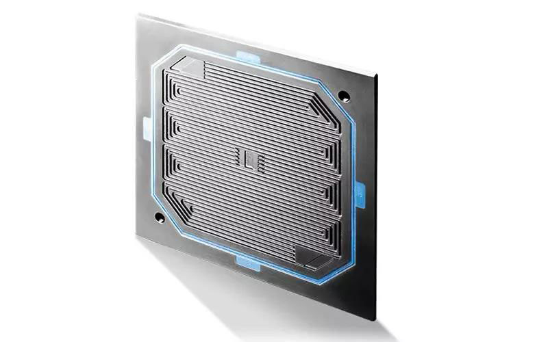 除此之外,作為燃料電池的“骨架”,雙極板的工藝水平仍待突破。雙極板(Bipolar Plate,BP)又叫流場(chǎng)板,與膜電極層疊裝配成電堆,在燃料電池中起到支撐、收集電流、為冷卻液提供通道等作用,其質(zhì)量好壞直接決定了電池輸出功率和使用壽命。