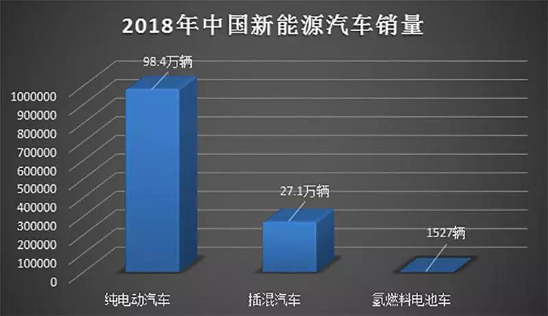 在新能源車(chē)內(nèi)部相比,2018年中國(guó)新能源汽車(chē)總銷(xiāo)量達(dá)125.6萬(wàn)輛,其中純電動(dòng)汽車(chē)98.4萬(wàn)輛,插混汽車(chē)27.1萬(wàn)輛,氫燃料電池汽車(chē)占比不足0.12%,可謂是慘不忍睹。