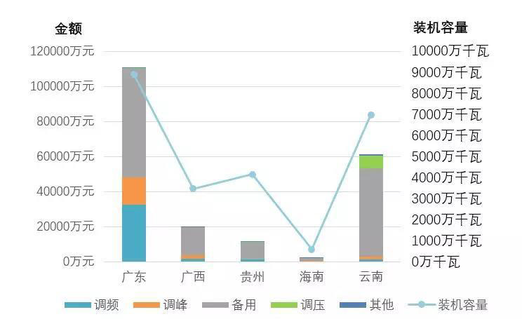 注:廣東調(diào)頻輔助服務(wù)市場(chǎng)于2018年9月1日啟動(dòng)試運(yùn)行并開始結(jié)算,4個(gè)月合計(jì)補(bǔ)償2.35億元,圖中未含該部分費(fèi)用。