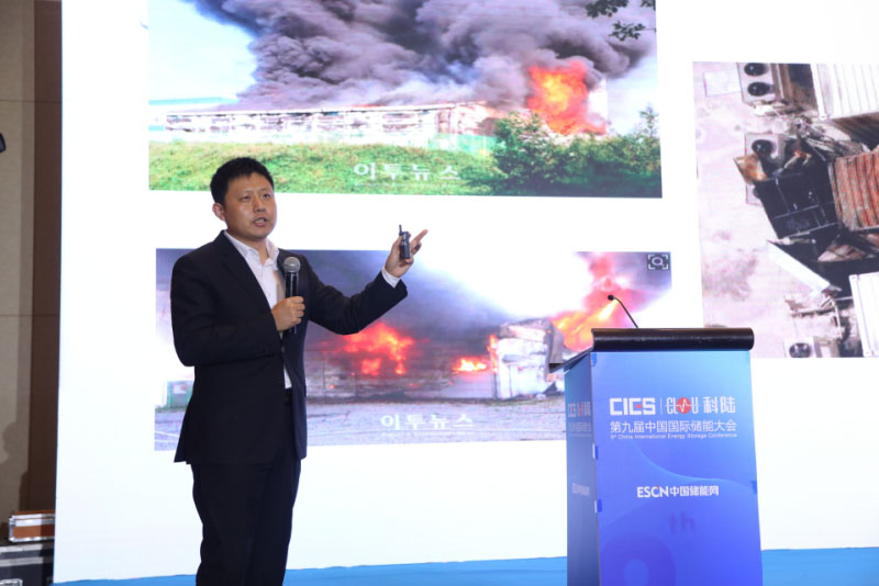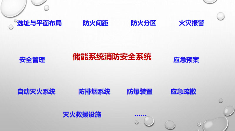 如何來(lái)做我們儲(chǔ)能系統(tǒng)的消防安全。有這么一些方面,首先設(shè)計(jì)可不可以做到安全還有標(biāo)準(zhǔn),鋰離子電池設(shè)計(jì)方面有欠缺的,從安全角度設(shè)計(jì)儲(chǔ)能的標(biāo)準(zhǔn),要努力去干。還有消防系統(tǒng),大家都在說(shuō)有一些消防系統(tǒng),在一個(gè)集裝箱內(nèi)裝一個(gè)懸掛系統(tǒng),這就是我們說(shuō)的消防系統(tǒng)嗎?我們認(rèn)為遠(yuǎn)遠(yuǎn)不夠,那你只是一個(gè)自動(dòng)滅火的裝置,我們消防系統(tǒng)是一個(gè)系統(tǒng),包括火災(zāi)報(bào)警自動(dòng)滅火,火災(zāi),爆炸的泄爆,這才是一個(gè)系統(tǒng),我們現(xiàn)在的考慮不夠。