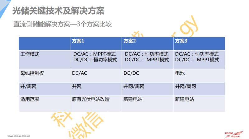 那第四部分是對科華在光儲產(chǎn)品還有方案上面的簡單的介紹,解決方案里面有一個服務(wù),包括離網(wǎng)微網(wǎng)服務(wù)以及大型的電站跟分布式的發(fā)電應(yīng)用,離網(wǎng)的解決方案涉及到雙向的控制器還有低壓的384V的控制器,包括對應(yīng)的逆變器,從10-600K的功率,針對離網(wǎng)的。上面是并網(wǎng)跟離并網(wǎng)都可以的PCS跟雙向的也都已經(jīng)在現(xiàn)場適用了。防逆流控制器、EMS能量管理系統(tǒng),這是相關(guān)的配套產(chǎn)品。這個從1000V到1500V的電壓等級,功率的話覆蓋500-1700kW ,集裝箱式的話1兆瓦到1.7兆瓦的。包括對應(yīng)的話那個是1000V跟1500V的控制器。