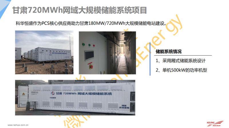 這是電網(wǎng)側(cè)的儲能,河南電網(wǎng)100MW儲能項目,目前已經(jīng)投運了。這邊是甘肅720MWh網(wǎng)域大規(guī)模儲能系統(tǒng)項目,這邊的PCS也是必須具備前面說到的功能,所有的功能可以實現(xiàn)并級。這是湖南電網(wǎng)長沙一期60MW儲能項目,這種也是要具備相關(guān)的電網(wǎng)側(cè)的調(diào)度。還有這邊是一個明陽大慶風(fēng)電廠風(fēng)電側(cè)的儲能應(yīng)用,也是在零下35度極寒天氣的應(yīng)用。