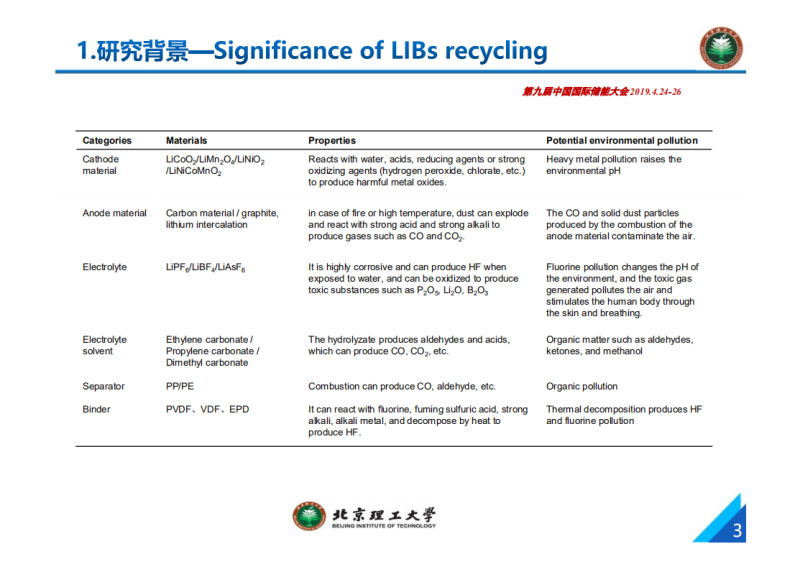 李麗:各位專家,上午好!今天跟各位匯報交流的題目是“退役鋰離子電池回收與資源化利用關(guān)鍵技術(shù)”。