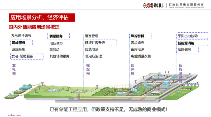 這張圖是針對我們做完梯次利用以后不同的應(yīng)用場景,包含了調(diào)頻調(diào)峰,包含了電網(wǎng)側(cè)的應(yīng)用,以及用戶側(cè)的峰谷差套利和平抑新能源的電網(wǎng)波動,這幾大類應(yīng)用。目前現(xiàn)在儲能應(yīng)用當(dāng)中,實(shí)際當(dāng)前都是比較缺乏政策支持的,絕大部分省份目前都沒有政策支持,而且商業(yè)模式實(shí)際也都是探索當(dāng)中,目前拿這幾個例子來說。像發(fā)電側(cè)來說有一個細(xì)則考核,對于電網(wǎng)側(cè)目前實(shí)際上是沒有明顯的政策的。對于用戶側(cè)來說現(xiàn)在只有峰谷電價(jià)差,前面也有人講,包括需量管理和容量管理以及備用電源的作用等等,對于新能源側(cè)目前還是一個很缺少政策的狀態(tài),所以對當(dāng)前來說在儲能大環(huán)境當(dāng)中還是存在著很大的推廣和普及的壓力的。