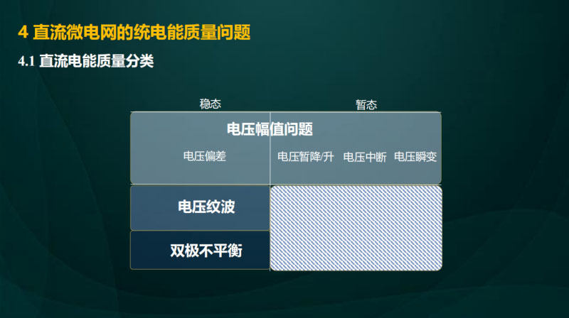 接下來我們分享一下目前我們在這個標準當中關于這個直流電的質(zhì)量相關的一些進展,總體上面來說我們覺得電流質(zhì)量問題,可以分為穩(wěn)態(tài)還有暫態(tài)兩種類型。