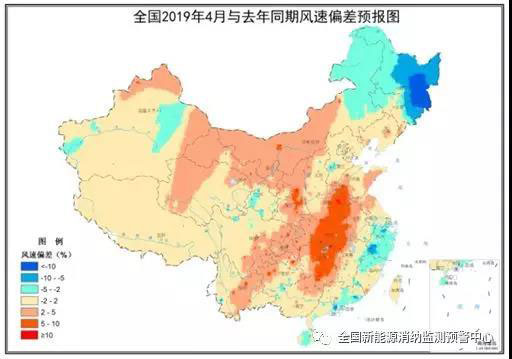 全國2019年4月(上圖)、5月(中圖)、6月(下圖)與去年同期風(fēng)速偏差預(yù)報(bào)圖(數(shù)據(jù)來源:中國氣象局風(fēng)能太陽能資源中心)