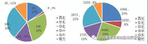 一季度各區(qū)域新增(左)、累計(jì)(右)并網(wǎng)光伏發(fā)電裝機(jī)(萬千瓦)
