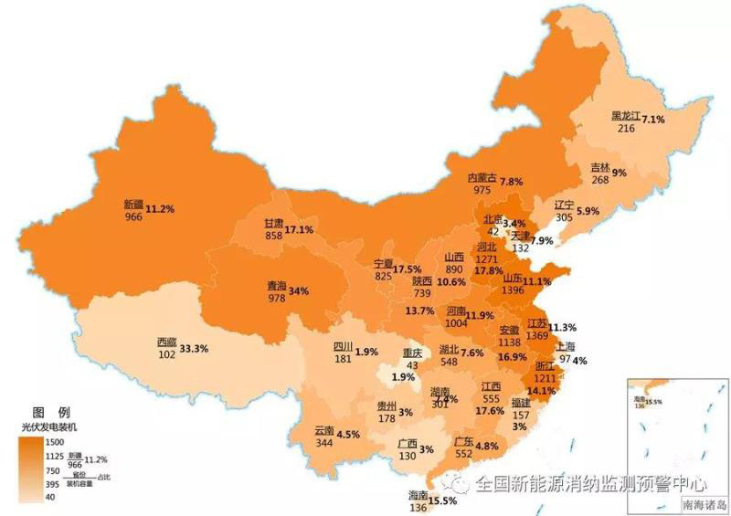 截至3月底各地區(qū)累計(jì)光伏發(fā)電裝機(jī)(萬千瓦)及占本地區(qū)總裝機(jī)比重