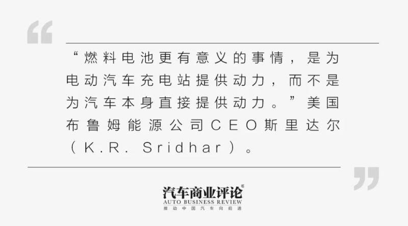 無獨(dú)有偶,今年4月初,美國燃料電池業(yè)界領(lǐng)軍人物、生產(chǎn)用于為建筑供電的固定式燃料電池(SOFC)的布魯姆能源 (Bloom Energy) 公司聯(lián)合創(chuàng)始人、CEO斯里達(dá)爾(K.R. Sridhar),在舊金山明確表示:“我不相信氫燃料電池汽車,把燃料電池用于氫能汽車是不合適的。”