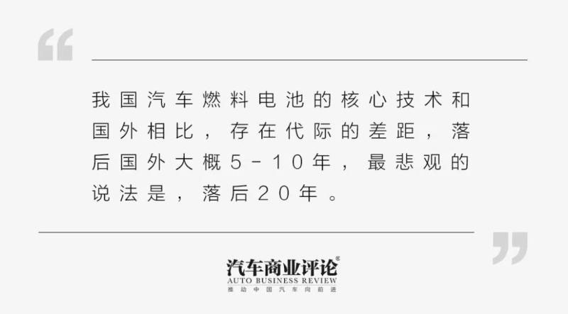然而,與另外兩種新能源車相比,燃料電池汽車至今仍處于示范運(yùn)營階段。為什么? 汽車商業(yè)評論綜合對業(yè)內(nèi)專家的采訪,基本可以得出這個結(jié)論:我國汽車燃料電池的核心技術(shù)和國外相比,存在代際的差距,落后國外大概5-10年,最悲觀的說法是,落后20年。