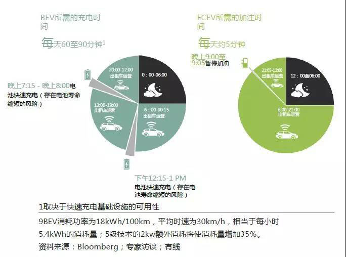 燃料電池汽車(chē)加油時(shí)間為0.02分鐘/英里,電動(dòng)汽車(chē)為0.26分鐘/英里,因此燃料電池汽車(chē)由于其更快的加注時(shí)間,加氫站所占用的空間比電池充電站要少15倍,因?yàn)槌潆姇r(shí)間延長(zhǎng)則需要更多的充電點(diǎn)。