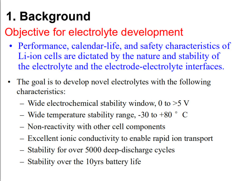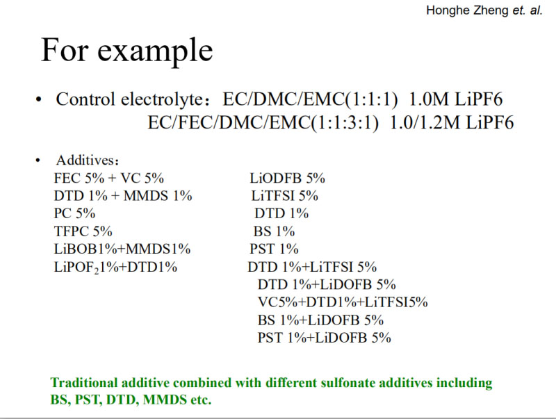 最后的結(jié)論就是,電解液還是需要發(fā)展,這個(gè)發(fā)展,一方面有添加劑的功勞,但是我一直認(rèn)為,主體溶劑還是要革新、還是要革命,這方面我們也做了一些工作,今天我們主要是匯報(bào)添加劑這塊。