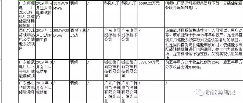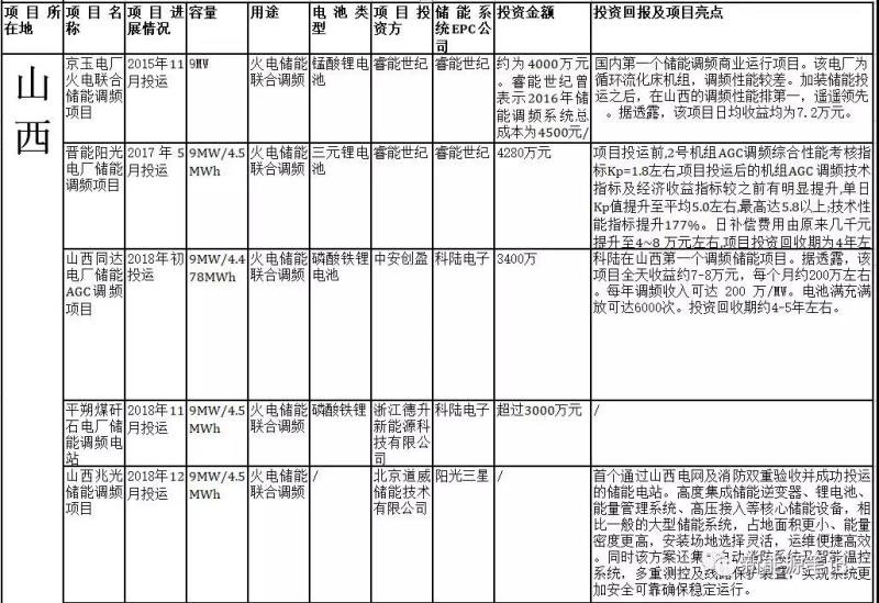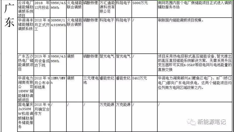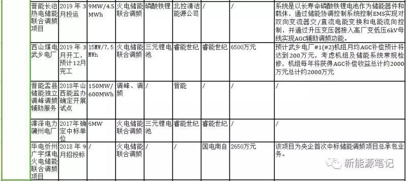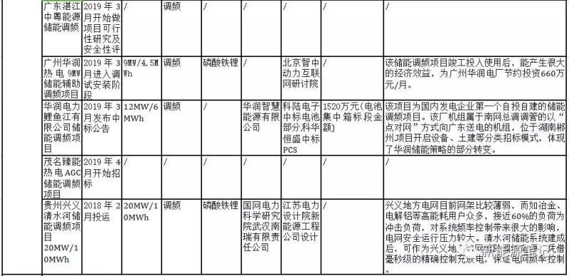 以下為截至2019年4月底的國(guó)內(nèi)儲(chǔ)能參與電力輔助服務(wù)(主要是調(diào)頻)的項(xiàng)目匯總:
