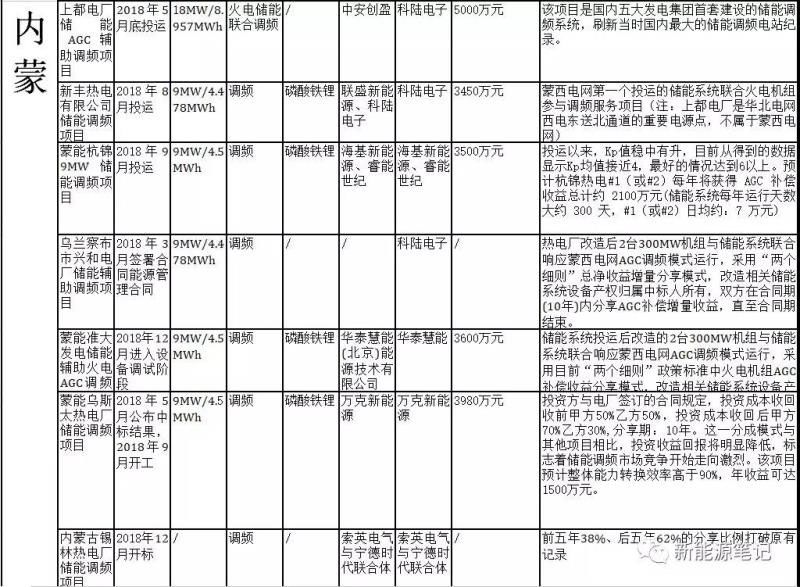 2018年下半年競(jìng)爭(zhēng)開始變得激烈,參與方增加,此前主要是睿能世紀(jì)、科陸電子默默耕耘市場(chǎng),2018年北控、浙浙江德升新能源科技有限公司、智光電氣、萬克能源、華泰慧能、華潤(rùn)、晉能等投資方進(jìn)入。發(fā)電側(cè)儲(chǔ)能調(diào)頻項(xiàng)目普遍采用合同能源管理方式進(jìn)行合作,電廠無需投資,項(xiàng)目投資方與電廠共享儲(chǔ)能調(diào)頻服務(wù)費(fèi),由于競(jìng)爭(zhēng)激烈,分成比例逐漸向電廠傾斜,如蒙能烏斯太熱電廠儲(chǔ)能調(diào)頻項(xiàng)目,投資方與電廠簽訂的合同規(guī)定,投資成本收回收前甲方50%乙方50%,投資成本收回后甲方70%乙方30%,分享期為10年。內(nèi)蒙古錫林熱電廠儲(chǔ)能調(diào)頻項(xiàng)目更是以前五年38%、后五年62%的分享比例打破原有記錄。