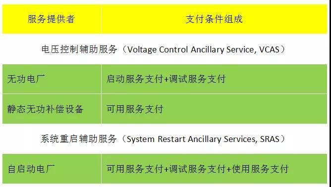 NSCAS和SRAS價(jià)格機(jī)制內(nèi)含四種基礎(chǔ)支付條件。第一是啟動(dòng)服務(wù)支付(EnablementPayments),僅當(dāng)服務(wù)被專門(mén)啟動(dòng)時(shí)支付;第二是可用服務(wù)支付(AvailabilityPayments),在每個(gè)交易間隔,服務(wù)處于可用狀態(tài)時(shí)支付;第三是調(diào)試服務(wù)支付(TestingPayments),在年度調(diào)試服務(wù)發(fā)生時(shí)支付;第四是使用服務(wù)支付(UsagePayments),在每個(gè)交易間隔,當(dāng)服務(wù)被使用時(shí)支付。