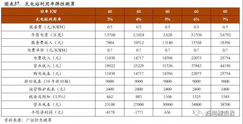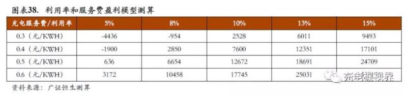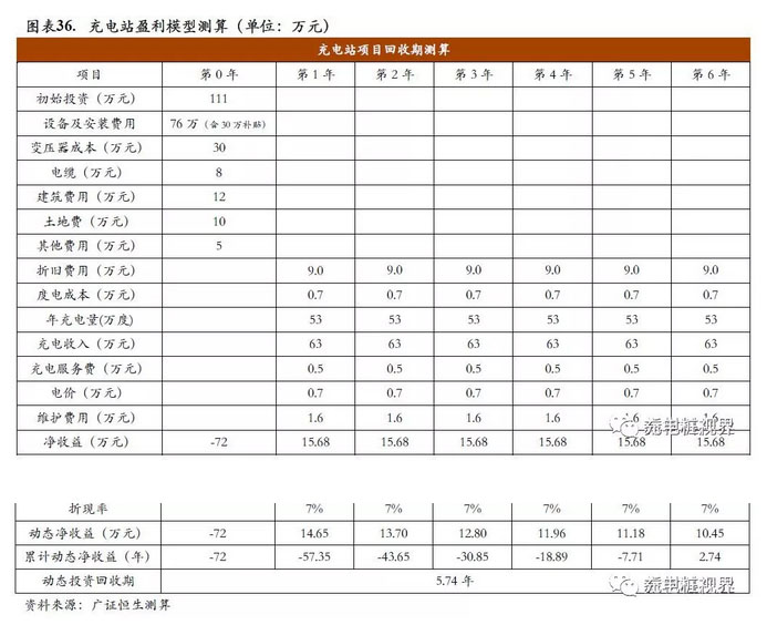 充電站建設(shè)回收期約5.74年。以配備10臺每臺充電樁的功率為60KW充電樁的分散式充電站為例,在目前利用率10%、充電服務(wù)費(fèi)0.5元/kwh、10年平均折舊法測算的假設(shè)下,回收期僅僅需要5.67年,較短的成本回收期開始吸引社會資本流入充電設(shè)施建設(shè)領(lǐng)域。