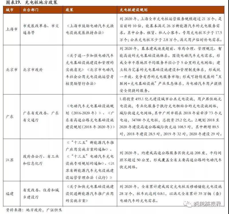 從政策端來看:充電難是當(dāng)前電動車行業(yè)發(fā)展面臨的一大難題,國家和地方政府從充電樁建設(shè)總量予以規(guī)劃,規(guī)劃2020年建有50萬個(gè)公共充電樁,1.5萬個(gè)集中式充電站的建設(shè)目標(biāo)。此外近期證券時(shí)報(bào)等途徑報(bào)道,國家部委溝通,預(yù)計(jì)2019年地方補(bǔ)貼將由制造端轉(zhuǎn)向充電運(yùn)營端。