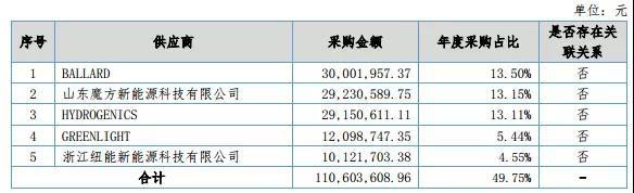 從供應(yīng)商情況來看,億華通電堆供應(yīng)商主要為BALLARD、HYDROGENICS,測試設(shè)備供應(yīng)商主要為GREENLIGHT,電堆生產(chǎn)線合作方為魔方新能源,石墨雙極板供應(yīng)商主要為浙江紐能。