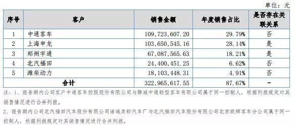 從客戶情況來看,報(bào)告期內(nèi),億華通前五大客戶為中通客車、上海申龍、鄭州宇通、北汽福田、濰柴動力,合計(jì)年度銷售占比達(dá)87.67%。