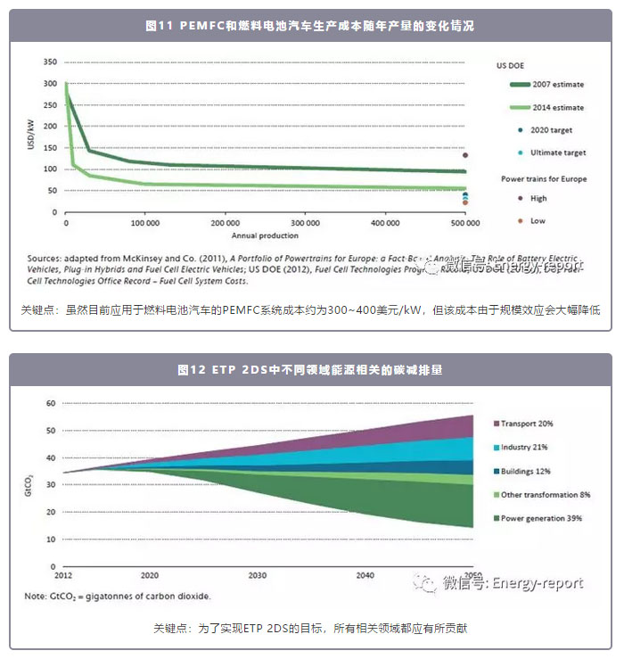 燃料電池汽車可以替代當(dāng)今傳統(tǒng)汽車提供碳排放量極低的出行和運(yùn)輸服務(wù)。到2050年,在公路運(yùn)輸中部署25%的燃料電池汽車比例可以貢獻(xiàn)高達(dá)10%的累計(jì)運(yùn)輸相關(guān)碳減排量,促使ETP 6°C情景(6DS)轉(zhuǎn)變?yōu)?DS,具體減排程度取決于不同地區(qū)的情況。假設(shè)燃料電池汽車銷售快速增長(zhǎng),在推出首批10000輛燃料電池汽車后,預(yù)計(jì)15~20年內(nèi)將形成一個(gè)自我維持的市場(chǎng)。