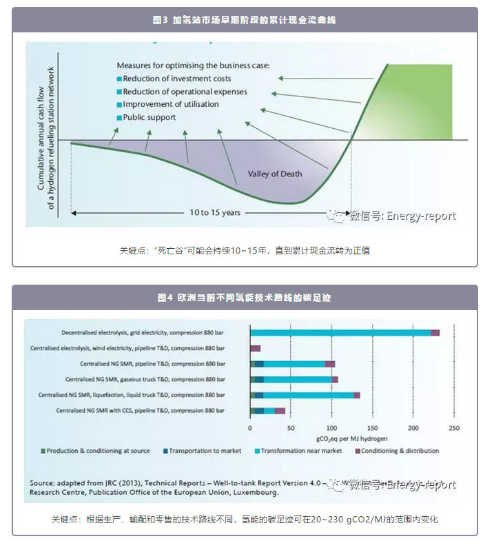 雖然氫和燃料電池在終端用能領(lǐng)域具有很大的發(fā)展空間和能源安全優(yōu)勢(shì),但氫氣發(fā)電、輸配和零售基礎(chǔ)設(shè)施的發(fā)展仍具有挑戰(zhàn)性。例如,燃料電池汽車市場(chǎng)發(fā)展相關(guān)的風(fēng)險(xiǎn)一直是基礎(chǔ)設(shè)施投資的重大障礙。對(duì)于從現(xiàn)在到2050年之間假定銷售1.5億輛燃料電池汽車中的每一輛,根據(jù)地區(qū)的不同,需要花費(fèi)900~1900美元用于氫氣基礎(chǔ)設(shè)施的開發(fā)。1