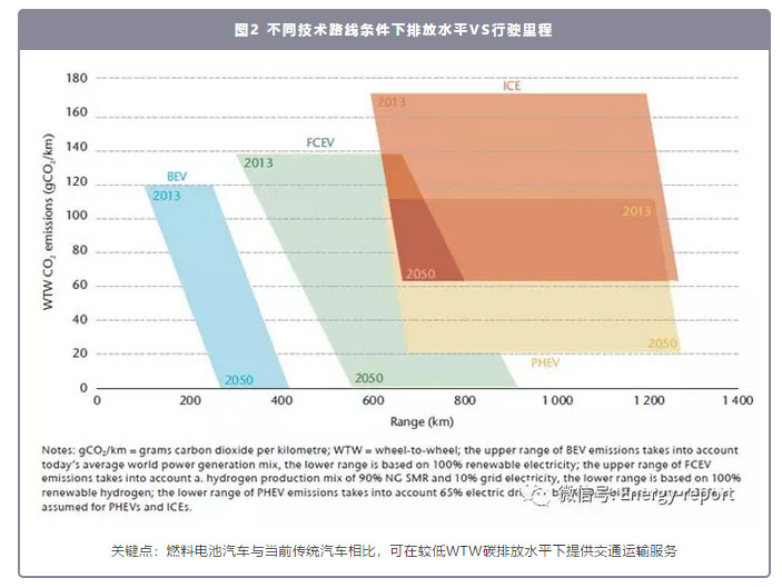 具有低碳足跡的氫有可能促進(jìn)能源相關(guān)二氧化碳排放的顯著減少,并有助于將全球溫度上升控制在2°C以內(nèi),正如國際能源署能源技術(shù)展望(ETP)中描述的高氫發(fā)展2°C情景一樣。此外,與直接化石燃料燃燒相比,氫氣的使用可以降低局部空氣污染物排放和噪音污染。通過在2°C情景下繼續(xù)使用化石燃料資源滿足終端用能需求,氫氣與CCS結(jié)合可以提供保障能源安全的措施并幫助維持多樣化的燃料組合。