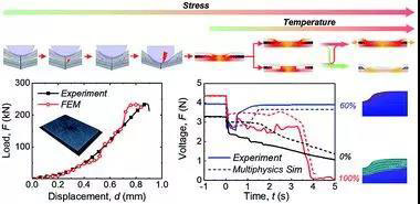 由于內(nèi)短路過程無法直接觀察測量,作者利用有限元和多物理參數(shù)模型對內(nèi)短路過程進行了輔助分析。其中,力模型用于分析內(nèi)短路前的擠壓過程,電池模型和短路模型用于分析內(nèi)短路過程的電化學(xué)行為,熱失控模型用于分析熱失控行為,以上四大模型和熱模型聯(lián)合使用。模擬仿真過程較為復(fù)雜,且目前利用仿真手段研究電池的論文愈來愈多,感興趣的朋友可以詳細研究下本論文中的相關(guān)講解,在此不贅述。