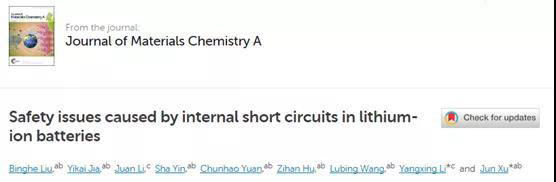 第一項成果:Safety issues caused by internal short circuits in lithium-ion batteries(鋰離子電池內(nèi)部短路引起的安全問題)。