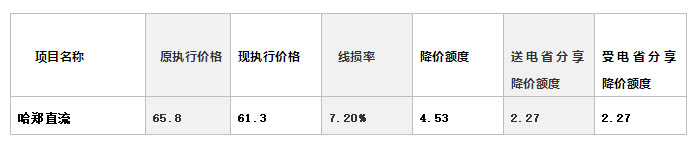 該政策將直接降低跨省跨區(qū)專項工程輸電價格。以哈鄭直流為例,其原執(zhí)行的輸電價格為65.8元/千千瓦時,重新核定后的價格為61.3元/千千瓦時,降價額度為4.53元/千千瓦時,送電省、受電省各分享降價額度2.27元/千千瓦時。