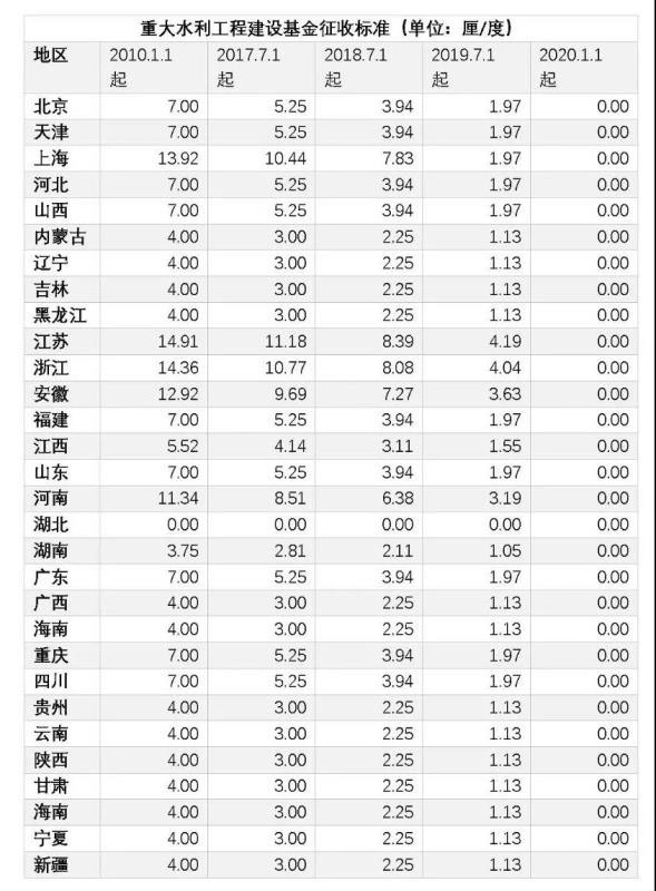 (表1.重大水利工程建設基金征收標準。數(shù)據(jù)來源:國家發(fā)改委、財政部)