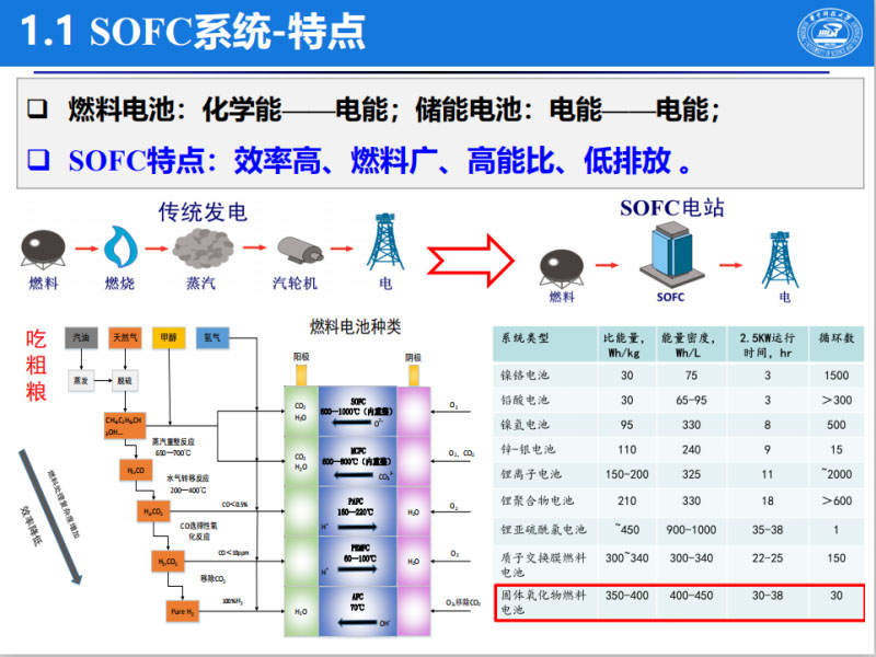 李曦:各位來賓,大家上午好!下面將我們團(tuán)隊(duì)在固體氧化物燃料電池系統(tǒng)性能評估與健康管控領(lǐng)域所做工作給大家做一個(gè)介紹。主要圍繞以下四個(gè)方面。首先是SOFC系統(tǒng)的背景、原理、特點(diǎn)。剛才前面幾位老師都已經(jīng)詳細(xì)地介紹了SOFC系統(tǒng)的發(fā)展歷史和產(chǎn)品特點(diǎn)。這是美國的海軍水下作戰(zhàn)中心選擇UUV動(dòng)力電源的時(shí)候所做的能量密度比的數(shù)據(jù)論證,充分說明了固體氧化物燃料電池優(yōu)勢。固體氧化物燃料電池的核心反應(yīng)載體,在高溫600℃以上發(fā)生電化學(xué)反應(yīng),為保障穩(wěn)定高品質(zhì)系統(tǒng)輸出,還需要配備一系列高低溫區(qū)BOP器件等形成一個(gè)獨(dú)立發(fā)電系統(tǒng),才能符合一個(gè)具體應(yīng)用場景的實(shí)際需求。圖中是國際上SOFC在海陸空等領(lǐng)域呈現(xiàn)的不同具體應(yīng)用,比如美日歐等國的分布式電站、家庭熱電聯(lián)供、車用輔助動(dòng)力以及百瓦級(jí)無人機(jī)。