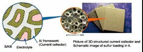 圖10 3D結(jié)構(gòu)集流體的圖片和填充活性物質(zhì)硫的集流體示意圖