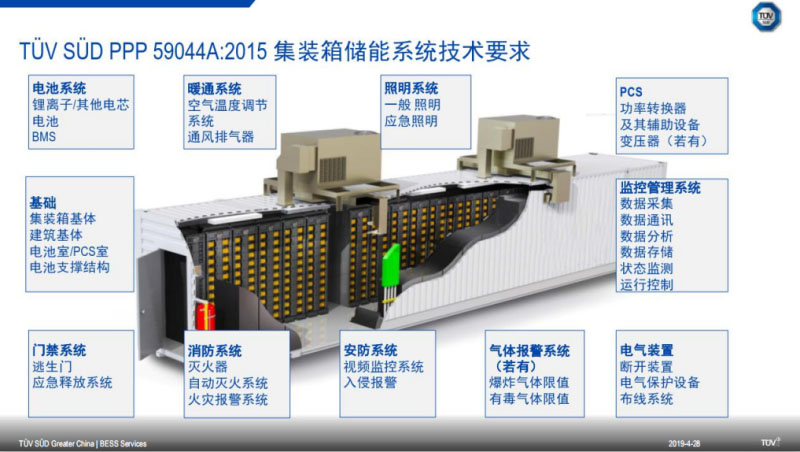 PCS的要求剛剛也提了,還有并網(wǎng)EMC的要求,還有暖通系統(tǒng)本身的要求,還有應(yīng)急照明的、照明的配電安全的,會(huì)不會(huì)有觸電風(fēng)險(xiǎn)等等要求,還有消防的一些要求,還有保護(hù)器件的。對(duì)整機(jī)有安全要求,包括我們結(jié)構(gòu)的安全、測(cè)試的要求,測(cè)試的要求包括一些電氣裝置的認(rèn)證、保護(hù)功能的一些認(rèn)證、零部件功能的一些認(rèn)證,招商測(cè)試,極端環(huán)境運(yùn)行的測(cè)試,還有EMC、功能安全方面的要求。