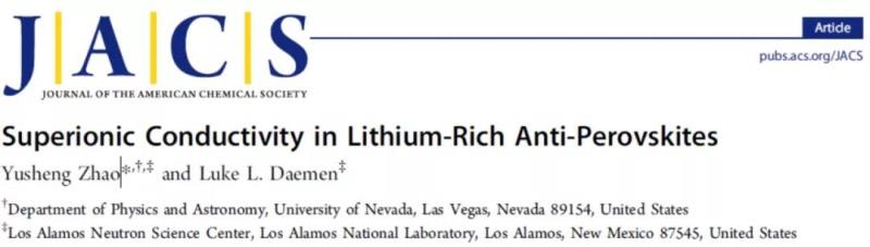 2012年,趙予生在JACS發(fā)文報(bào)道了基于鈣鈦礦ABX3結(jié)構(gòu), 用一價(jià)陽(yáng)離子Li+占據(jù)X位得到富鋰材料,并用 -1價(jià)的鹵族元素和-2價(jià)的O分別來(lái)替代A位和B位。