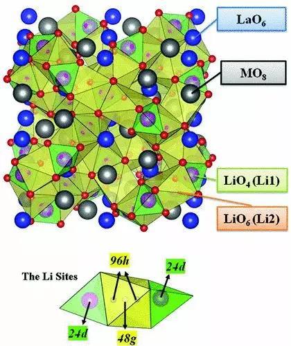 2007年Ramaswamy Murugan等發(fā)現(xiàn)Li7La3Zr2O12,室溫離子電導(dǎo)率超過(guò)10-4 S/ cm。石榴石通式為A32+B23+(SiO4)3,“stuffed”的鋰占據(jù)方式為該體系實(shí)驗(yàn)研究的熱點(diǎn)之一。