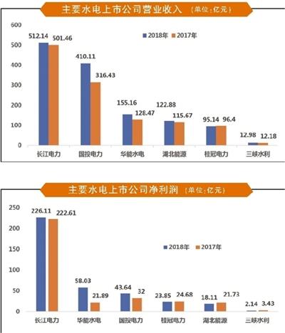 年報顯示,溪洛渡、三峽水庫來水偏豐,長江電力2018年發(fā)電量2154.82億千瓦時,創(chuàng)歷史新高。受豐水期拉動,長江電力業(yè)績表現(xiàn)平穩(wěn),實現(xiàn)凈利226.11億元,增長1.57%;雅礱江流域、黃河流域來水向好,國投電力發(fā)電量也穩(wěn)步增長,加之上網(wǎng)電價上漲、電量小幅提升以及上網(wǎng)成本小幅下跌,2018年國投電力業(yè)績不俗,實現(xiàn)營收410.11億元、凈利潤43.64億元,營收與凈利潤增幅均在30%左右。