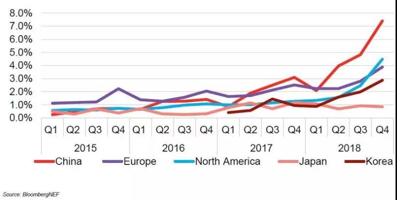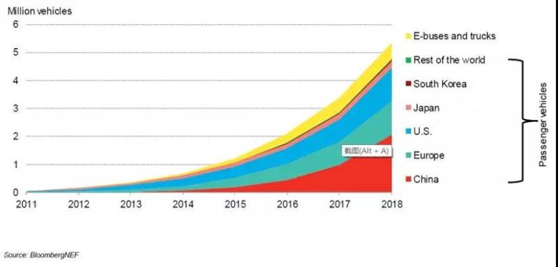這份報告稱,全球電動汽車保有量2018年已經(jīng)突破500萬輛,電動車在中國、歐洲、北美、日本等主要汽車市場的占比仍低于5%。