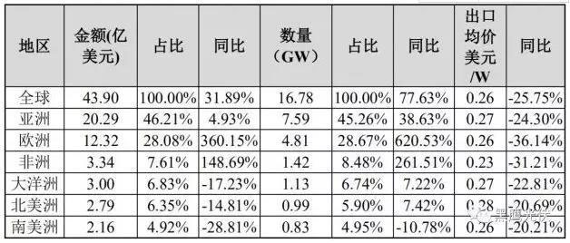 一季度組件出口數(shù)據(jù)統(tǒng)計(jì)(按地區(qū))