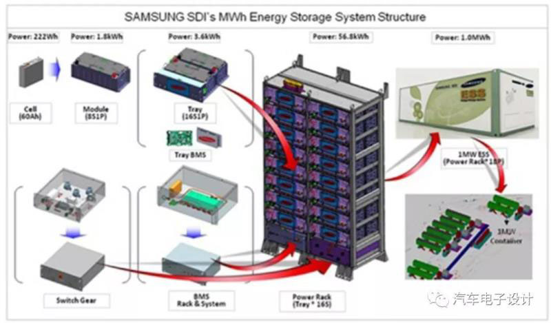 如下圖所示:SDI之前的E2的儲能架構是用的94Ah電芯,現(xiàn)在發(fā)布的E3升級為111Ah。
