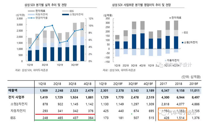 如下圖所示,SDI的電池業(yè)務2019Q1大約是100億左右。