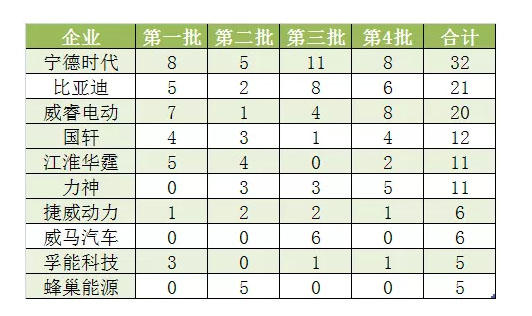從配套數(shù)量上來看,寧德時代32款的總配套數(shù)量穩(wěn)居第一,并且每一批配套數(shù)量均為第一(其中第四批與威睿電動并列第一) ,配套車型涉及面最廣,包括大眾、現(xiàn)代、北汽、吉利、菲亞特、奇瑞、長城、廣汽、奧迪、威馬、起亞、國能等國內(nèi)主流車企,“朋友圈”涵蓋半個車企圈果然不是說說而已。