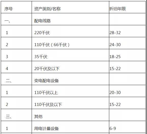 增量配電網(wǎng)企業(yè)固定資產(chǎn)分類定價折舊年限