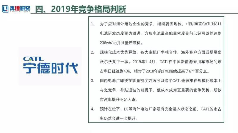 預(yù)計在松下、LG等海外電池廠家沒有完全進入狀態(tài)之前,CATL的市占率仍然會進一步提升。